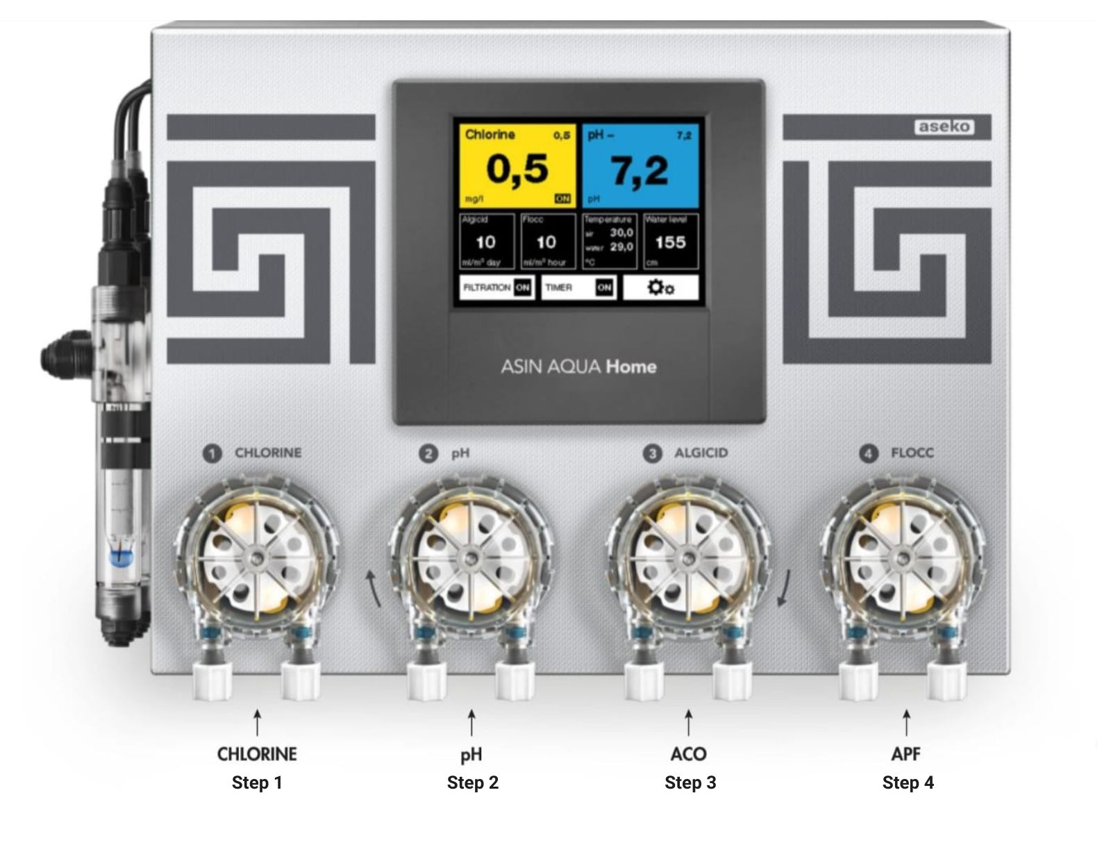 Most swimming pools rely on basic two-stage dosing systems, typically controlling only pH and chlorine. While functional, these systems often require higher chemical levels to maintain safe water quality.